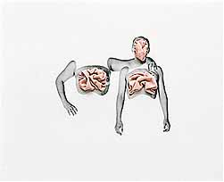 Talvez um dos trabalhos mais surpreendentes seja o da artista plástica Keila Alaver. Keila empresta da fotografia o esqueleto, a verossimilhança, mas para conseguir encenar as figuras teatrais que lhe interessam. Recorta os contornos de corpos fotografados e fragmentados, retirando deles as vísceras, o sexo e os rostos, para preenchê-los com sacos “esvaziados”. Consegue, assim, sair da bidimensionalidade da fotografia para mostrar espaços vazios.