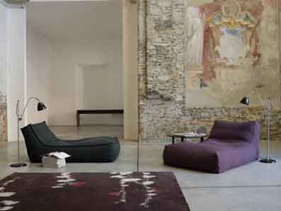 Mas entre todos os modelos, se destacam os da linha Zoe, da Verzelloni. Não dá vontade de sair nunca mais. Abaixo, a versão Chaise longe, em linho, cores queimadas, como o cinza e esse roxo desbotado. Apesar do conforto, tem firmeza e a forma estrutura bem o objeto, dando sustentação a quem nele se senta. O “encosto” mantém o olhar numa posição confortável para ler, conversar ou ver TV. Projeto do Studio Lievore Altherr Molina para a Verzelloni.