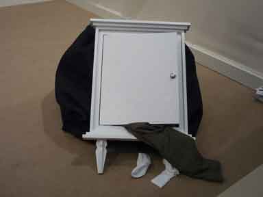 Katrin Sonnleitner, a criadora do objeto acima, estava no estande, mostrando a sua Möbelette, objeto que propõe “um novo jeito de lidar com seus móveis”, segundo o flyer. Tem uma aparência de ordem – com portinha de madeira – e na real é um grande saco de pano para jogar suas coisas. “E do que mais você poderia precisar?”