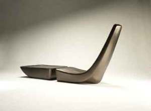 John Niero também estava no estande telefonando enquanto mostrava a sua poltrona e pufe J Low e outros objetos. A J Low é bacana, você vê logo aqui abaixo, e o cabelo do John é de mancha de onça, super bem feita. O nome do estúdio do John é: “Just not Normal”.