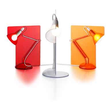 A Anglepoise Fifty, de Anhtony Dickens, é uma peça fixa de policarbonato injetado, que reproduz o perfil da Anglepoise original como uma moldura, em que a lâmpada é fixada em inclinação de 50 graus. Com a parte de trás aberta, a luminária projeta a luz e a cor do policarbonato sobre a parede mais próxima.