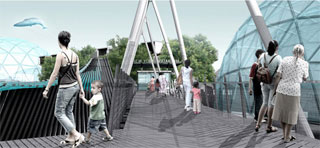 Nas suas margens ficará uma grande passarela que conecta o aquário ao metrô, à praia, ao mar e a um futuro terminal de ferry boat já planejado.