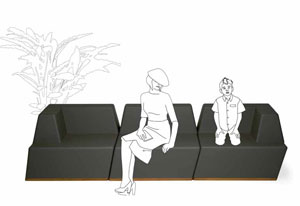 As peças chamam a atenção do público pela simplicidade do desenho e pelo material muito leve. Muita gente se senta e se recosta para sentir a textura e saber se é confortável. É confortável sim.