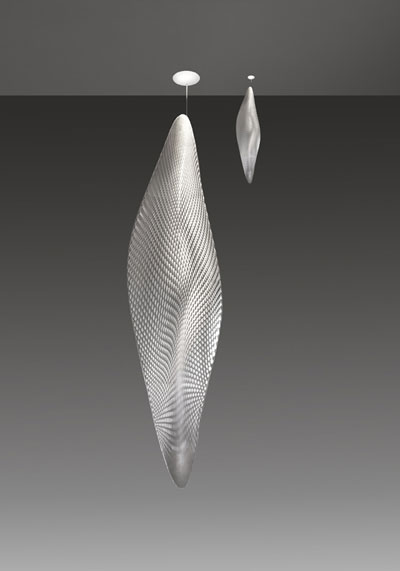 Doride”, de Karim Hashid, também com uma versão de pé, com haste longa (1,60m a 2,20m). Hashid a definiu como um gesto fluido, “uma peça zoomórfica, uma natureza digital”.