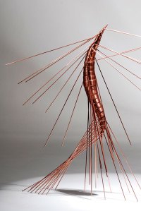 Entre eles estão bichos articulados da série Petartrópodes, como este que aparece em duas posições nas fotos acima e abaixo.