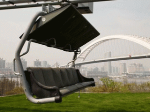 Um dos atrativos do pavilhão da Suíça é o grande jardim na área superior, que pode ser visto a bordo do sistema de cabines móveis tradicionalmente usado nas estações de esqui.