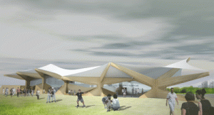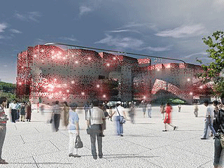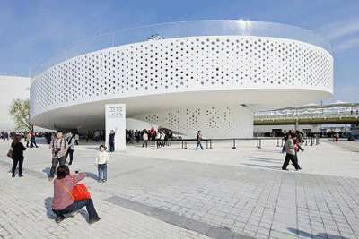 O pavilhão francês, de Jacuqes Ferrier, resultado de concurso internacional com 47 escritórios, com fachadas e cobertura verde: