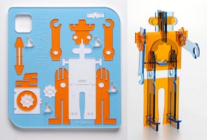 Os primeiros robôs da Troyart ganharam forma em kits feitos em lâminas de acrílico para montar, em 2007.