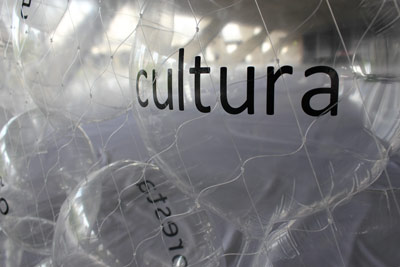 Dentro deste espaço tecido pelo invisível, lançamos ao sabor do vento 9 mil balões transparentes com uma palavra impressa.